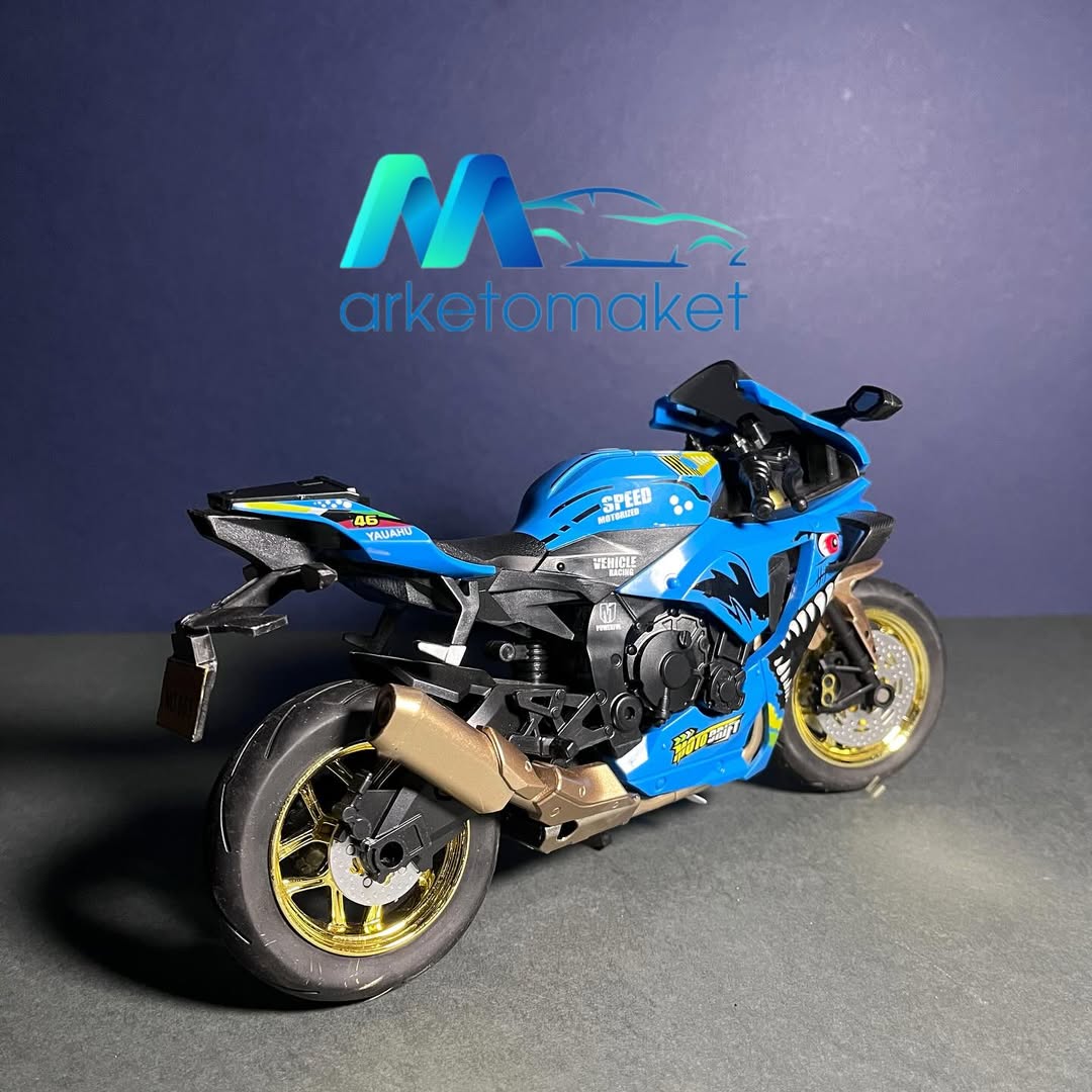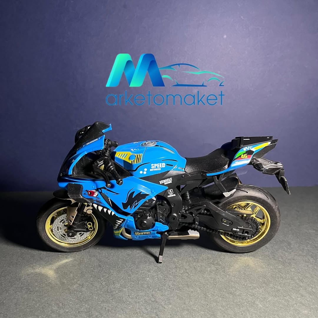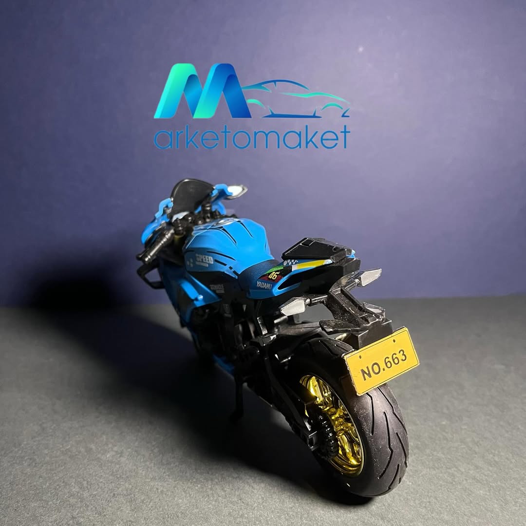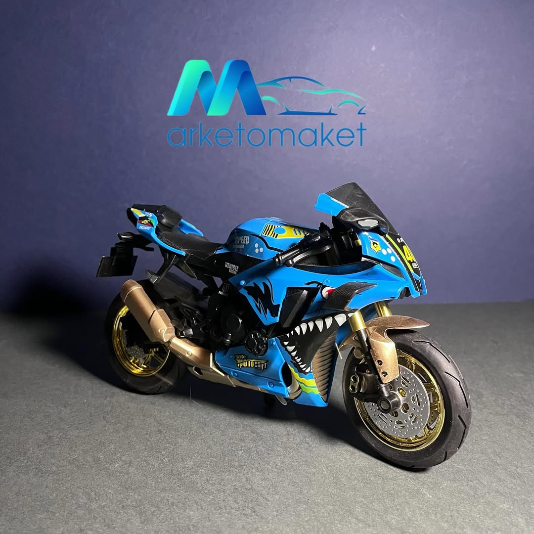 ماکت فلزی /۱/۹ موتور سوزوکی بی کینگ برند سوزوکی کمک فنر دار فرمان متحرکلاستیکها متحرک بسیار با کیفیت با جزییات دقیق.