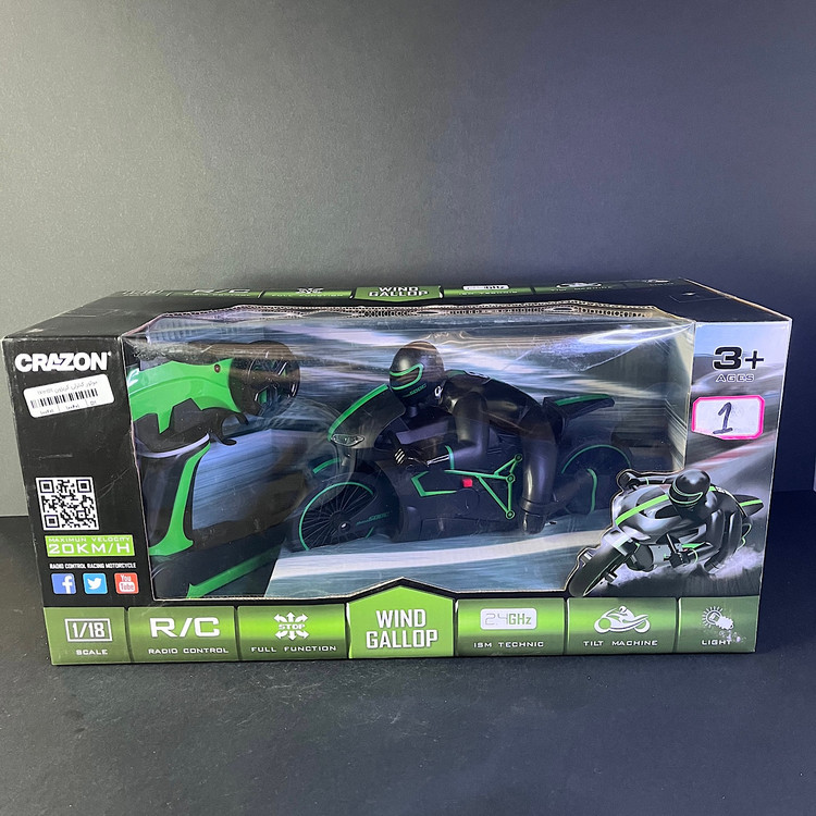 موتور سیکلات بسیار خاص زیبا جذاب با فیگور راننده در ابعاد ۱/۹ ساخت برند معتبر crazone حد اکثر سرعت ۲۰ کیلومتر قابلیت چرخش رو به جلو جرکت روبه عقب چراغدار است رادیو کنترل ۴ کانال دارد.