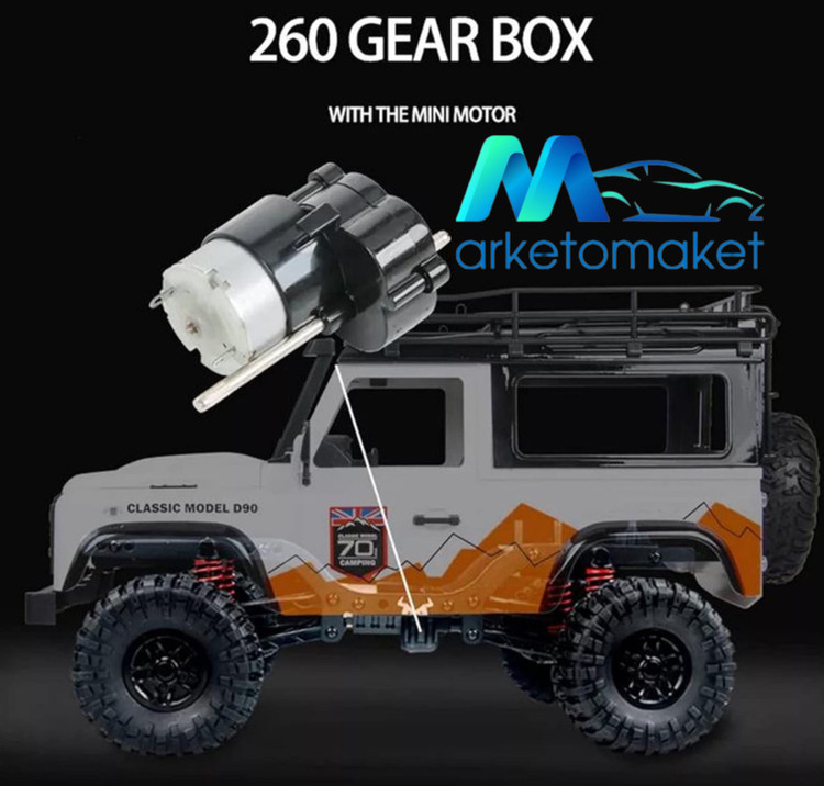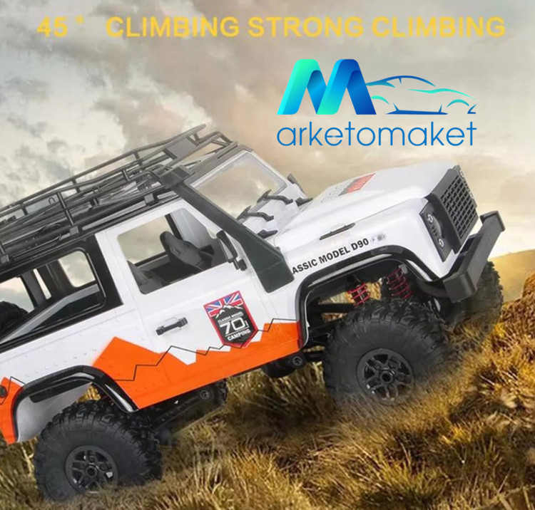 ماشین حرفه ای ضخره نورد لندرور دیفندر دو دیفرانسیل بسیار قدرتمند دارای چراغ کیفیت بسیار بالا دارای گیربکس رادیو کنترل چهار کاناله ۲/۴ باطری لیتیومی لاستیکهای عاج جنگلی بشیار مقاوم ،
