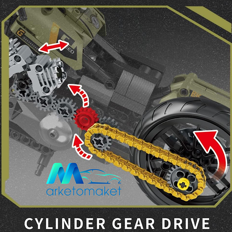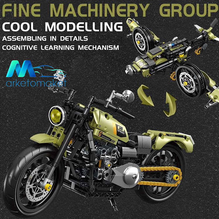 لگو موتور سیکلت هارلی ارتشی و قابلیت تبدیل شوندگی به هواپیما کیفیت بسیار بالا دارای کیربکس و تسمه چرخ و پیستون فرمان متحرک دارای برچسب روی باک