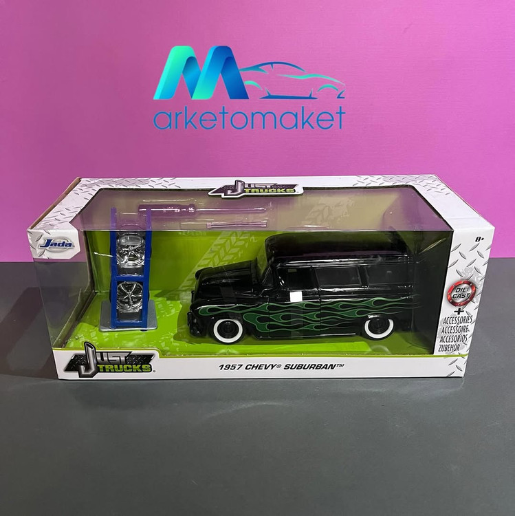 ون آمریکایی شورلت سابر بن مدل ۱۱۹۵۷ با کیفیت مقیاس ۱/۲۴ درب باز شو.کاستوم شده برند جادا کمیاب.با ست و ابزار تعویض لاستیک. #پونتیاک_فایربرد #ماکت_ماشین ٓمریکایی #ماشینبازان #هدیه_خاص #شورلت #فورد_۱۰۰#وانت_فورد_فلزی #شورلت_سی۱۰